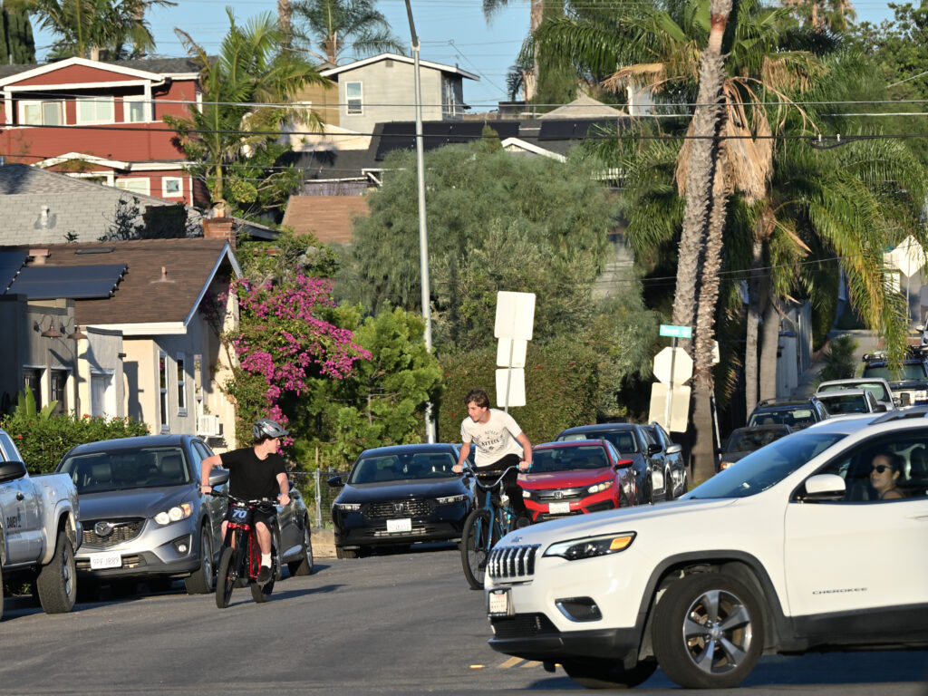 I set up the shot, for their approach. You can see them coming upon Louisiana but turned towards one another rather than looking ahead. Meanwhile, the driver is somewhat blinded by the late-day sun as she turns Westwardly. There is no indication that she sees the distracted bikers.
