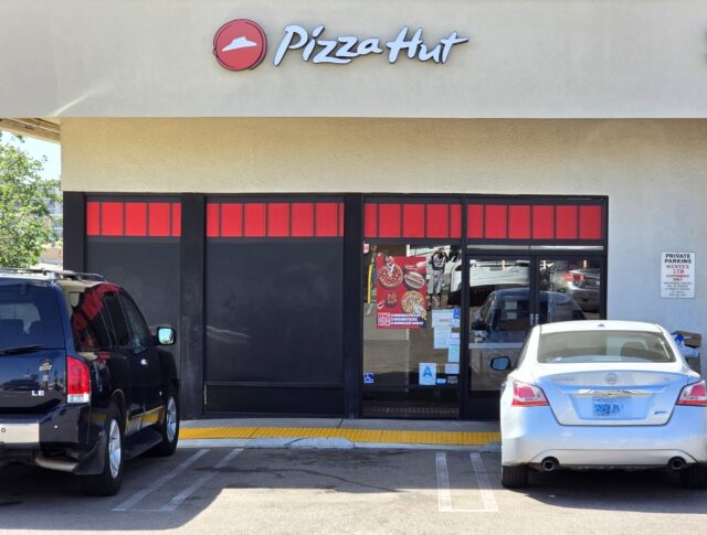 I stepped inside the restaurant to see chairs stacked on tables in fashion to cordon off most of the dining room. The menu screens were dark, as was the overall ambience. I could enter because roller-skating servers (e.g. carhops) exit through the same doors to deliver meals to parked vehicles. I vamoosed.