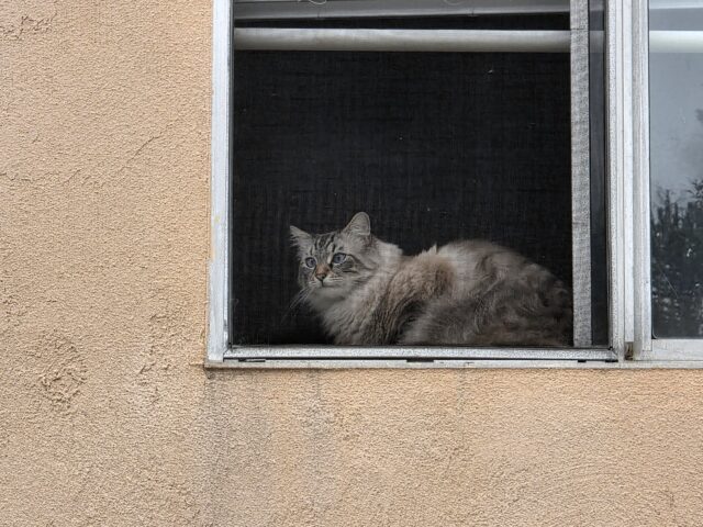 A drawback of letting a backlog build up is recollection. Why, when, and where did I take the kitty’s photo? Oftentimes, I don’t remember those off-street—in the distance. My recall is better for those animals seen out and about; other cues, such as specific surroundings, typically trigger memory.